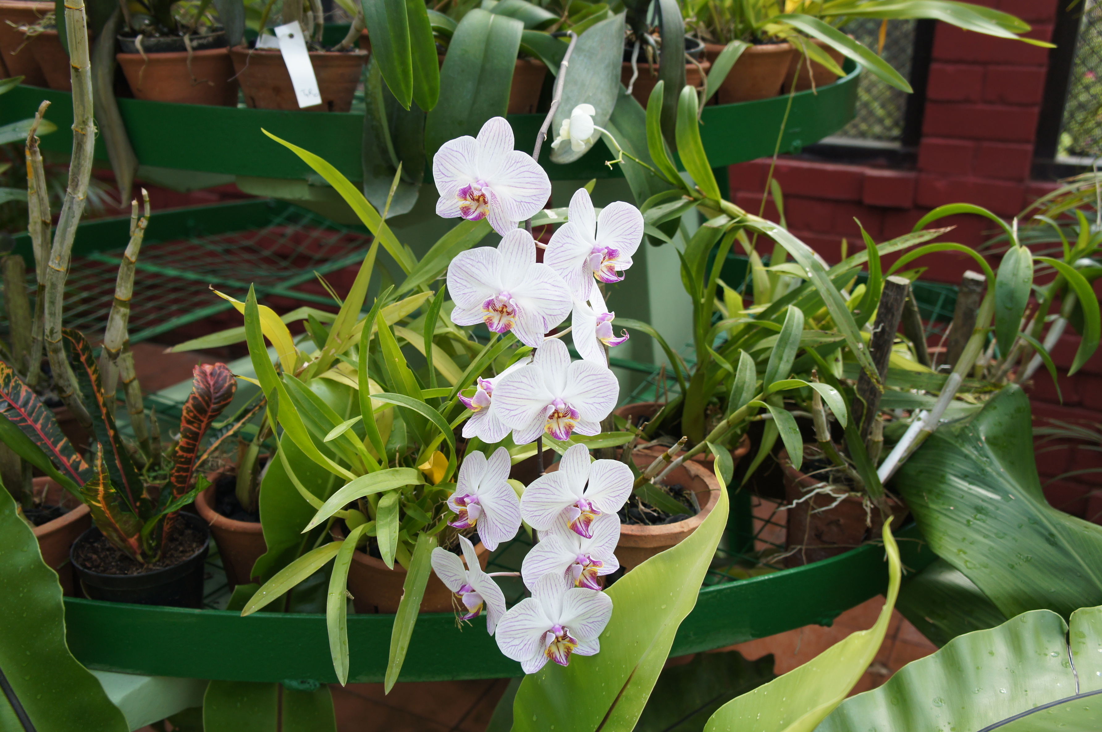 Sid, Pradeep and I start our climb with a series of stone staircases that are at first short with landings bounded by massive boulders and brick walls, then grow steeper as we ascend to get closer to the rock. I’ve mentally prepared myself for an arduous climb since Sid has told me that it can be very windy on the rock and he mentioned a very narrow, rickety walkway known to sway with the wind. Pradeep said that when he visited in December with Uncle Emil’s daughter from France that she had to stop several times along the way to catch her breath. I climbed a volcano in Nicaragua once, but that was over 10 years ago and I start to wonder about what lies ahead. I am happy to see a pretty sturdy metal walkway constructed along the rock face, replacing the rickety, wooden one that definitely looks less than safe. A winding spiral staircase takes us higher and deposits us into a naturally carved concave in the rock where there are some faint and some well-preserved wall paintings of smiling, buxom and bejeweled ladies. As legend has it, King Kassapa was quite the ladies man with a harem of 100 concubines. These portraits are said to be depictions of them. They look happy serving each other plates of fruit and admiring flowers. Just beyond this ancient gallery is the mirror wall, which hugs the side of the rock and features 1,000-year-old graffiti. I can’t make any of it out on the shiny, yellowish wall, but I do see more modern etchings left by recent visitors.
