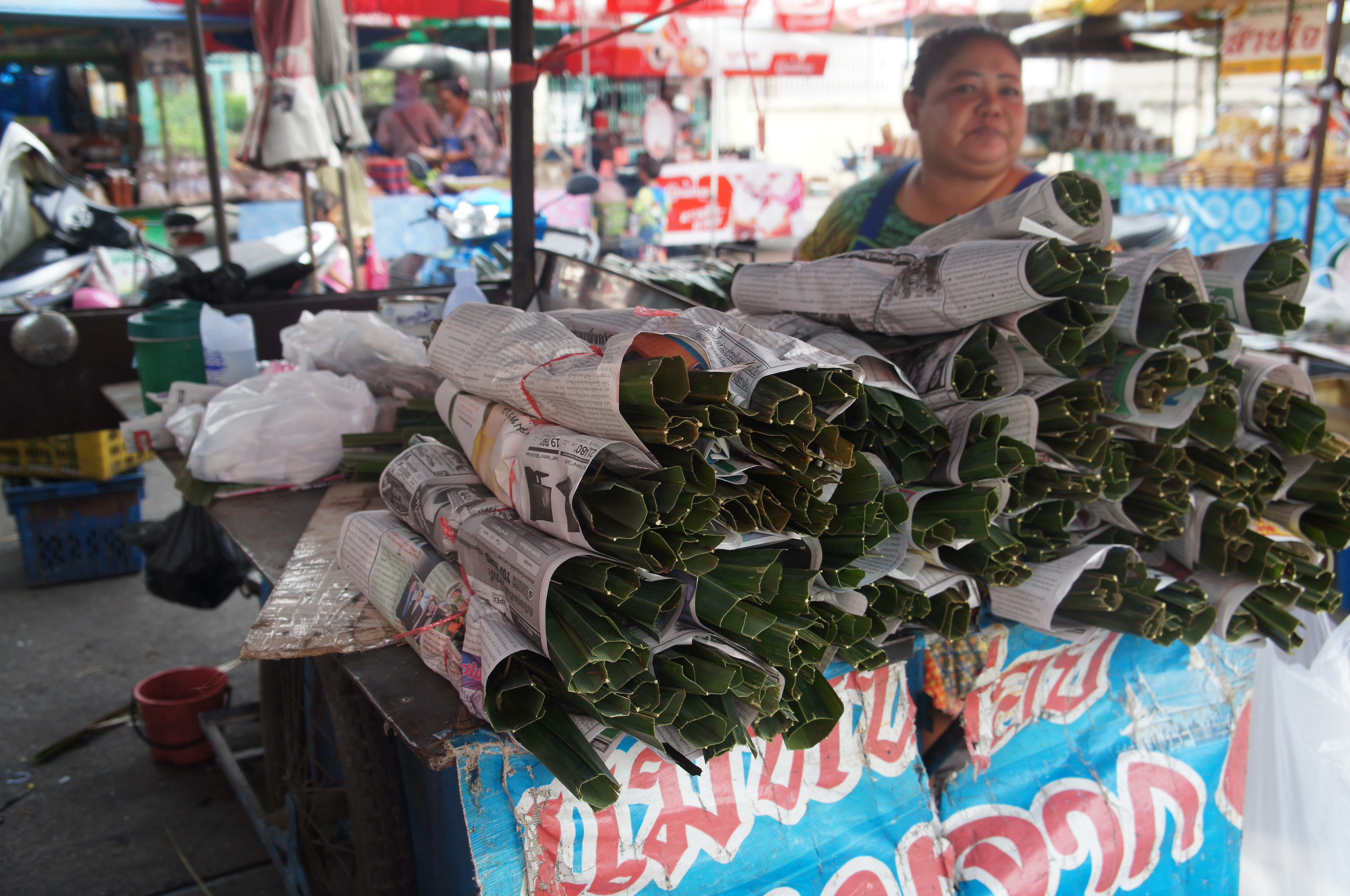 For lunch, J.J. inspects a roadside eatery before giving it her trademark stamp of approval. It’s super cute and quaint with seating made from tree stumps, so we approve, too. It’s our last chance to eat before we reach the border and we enjoy simple stir fried and fried rice dishes before moving on. The roadside stop would later feel like our last stop in civilization before reaching the Thailand-Cambodia border. We enter at Aranya Prathet on the Thai side of the border in a drizzle, which makes the huge, crowded marketplace seem dismal and a tad depressing.